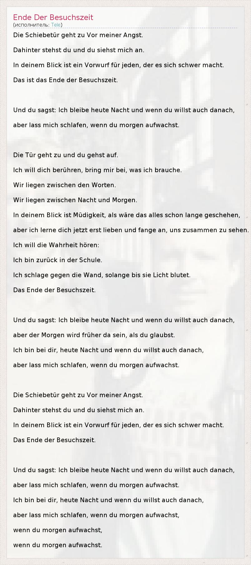ГлавнаяИсполнителиTeleEnde Der Besuchszeit