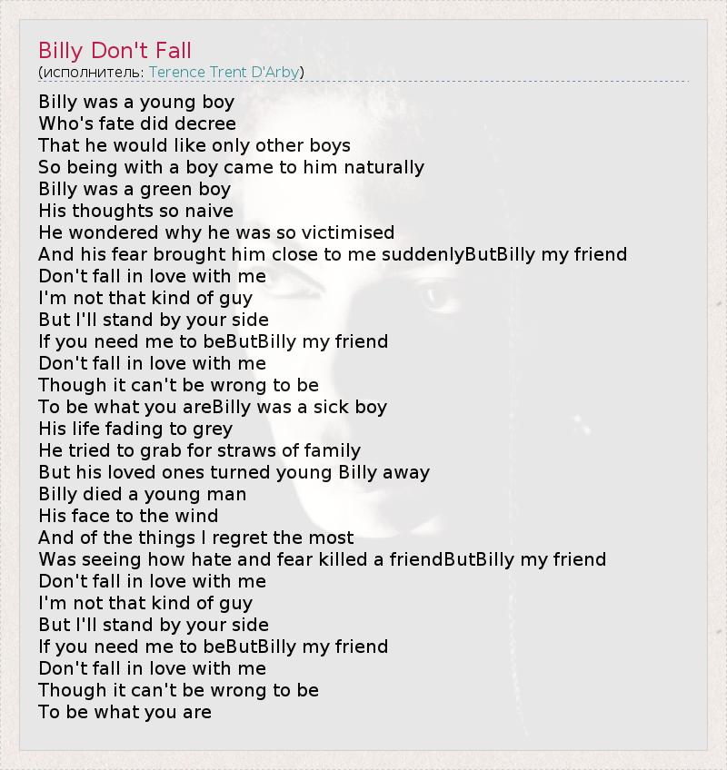 А как ты думаешь, о чем песня "Billy Don't Fall" ?