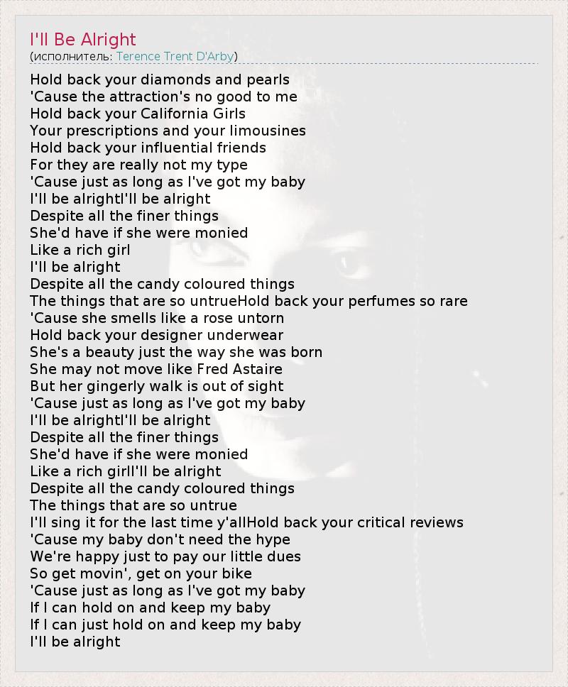 А как ты думаешь, о чем песня "I'll Be Alright" ?