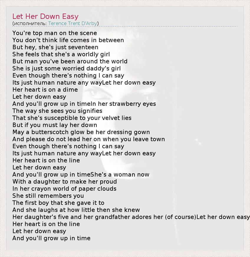 А как ты думаешь, о чем песня "Let Her Down Easy" ?