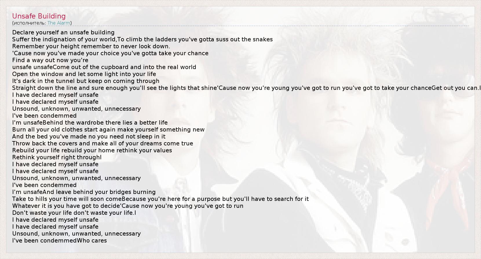 А как ты думаешь, о чем песня "Unsafe Building" ?