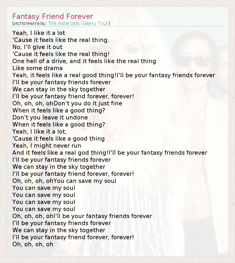 А как ты думаешь, о чем песня "Fantasy Friend Forever" ?