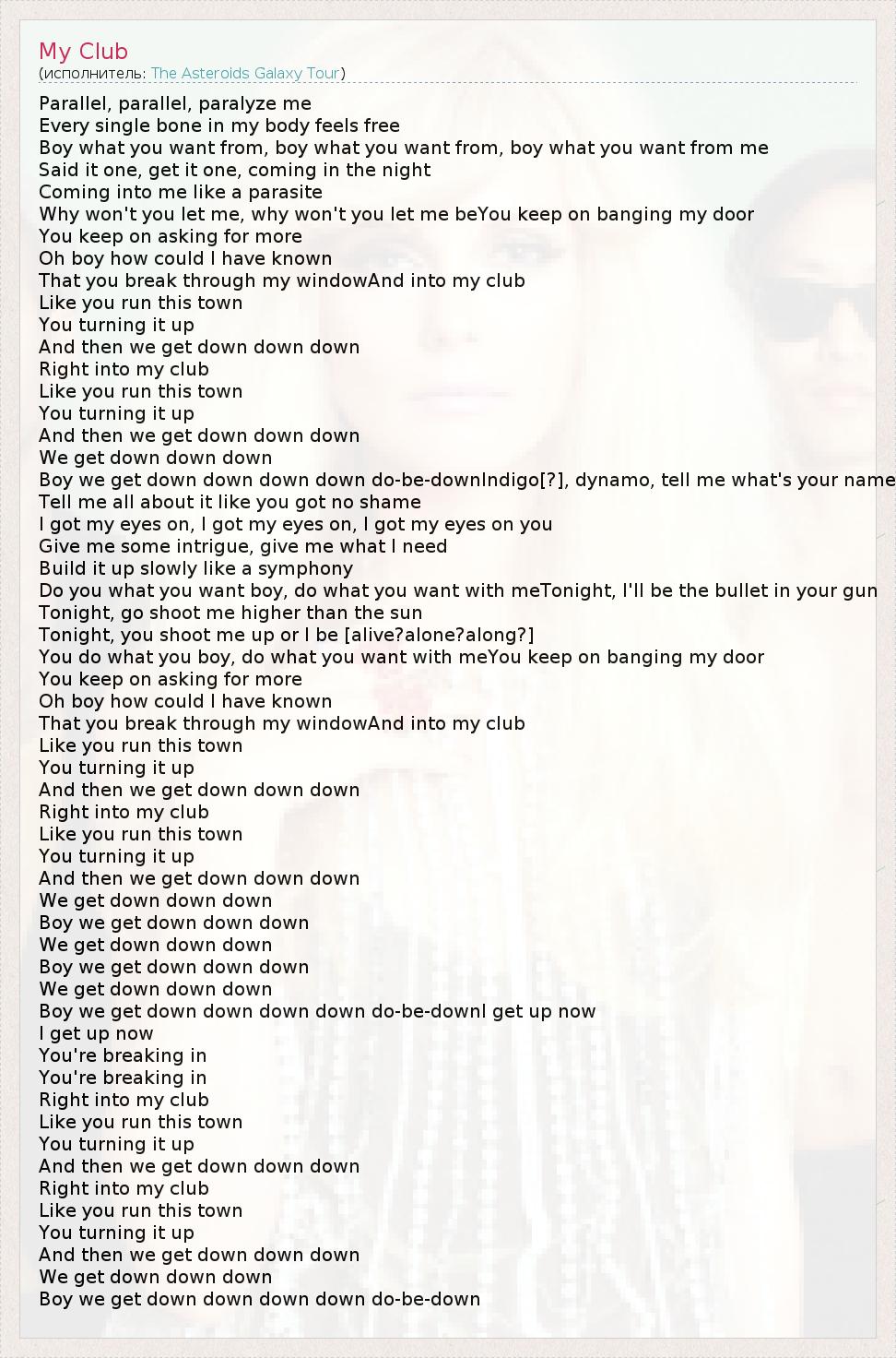 Boy we get down down down down do-be-downIndigo[?], dynamo, tell me what's your name