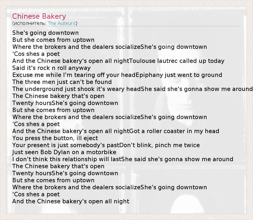 А как ты думаешь, о чем песня "Chinese Bakery" ?