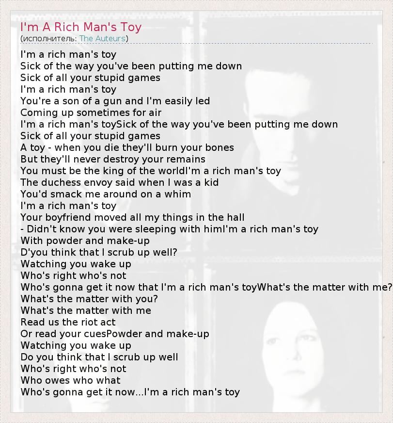 А как ты думаешь, о чем песня "I'm A Rich Man's Toy" ?