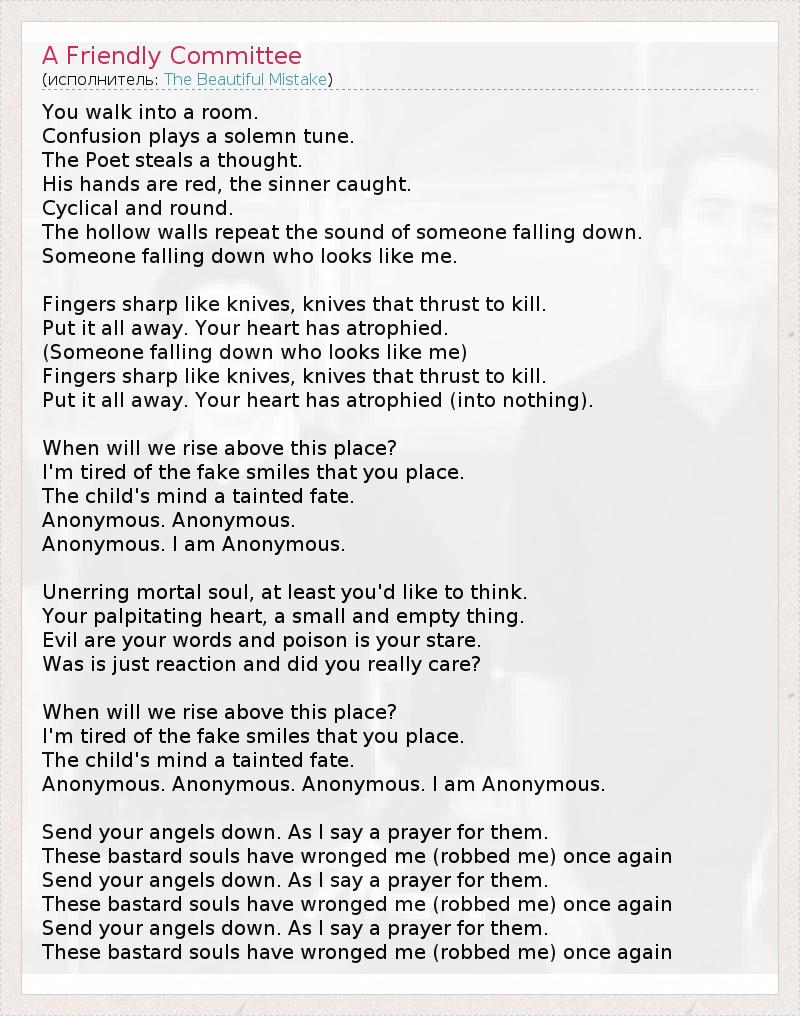 А как ты думаешь, о чем песня "A Friendly Committee" ?