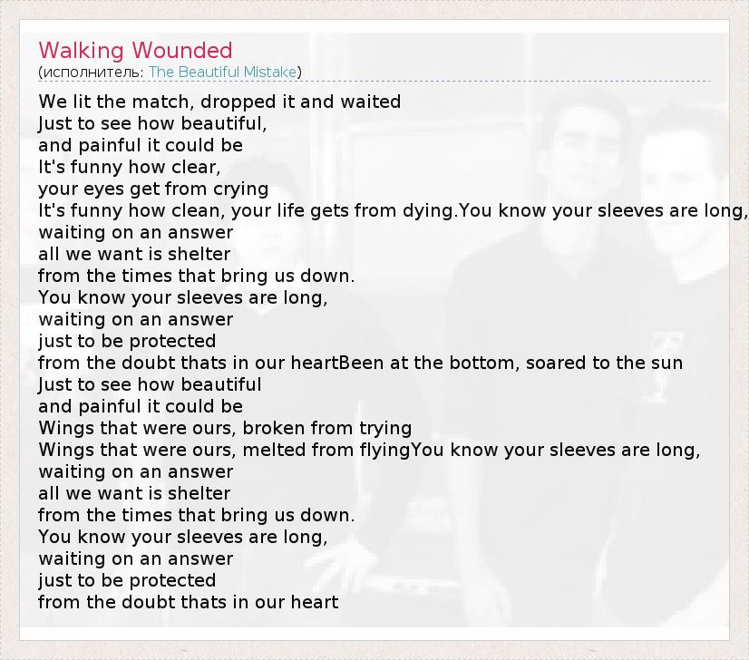 А как ты думаешь, о чем песня "Walking Wounded" ?