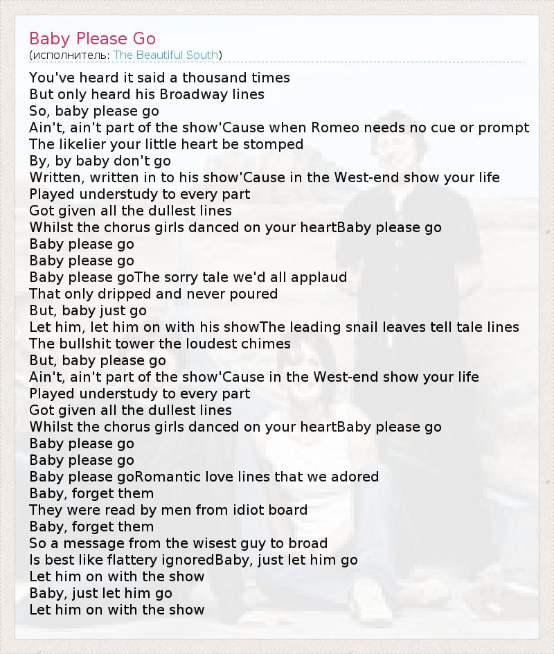 А как ты думаешь, о чем песня "Baby Please Go" ?