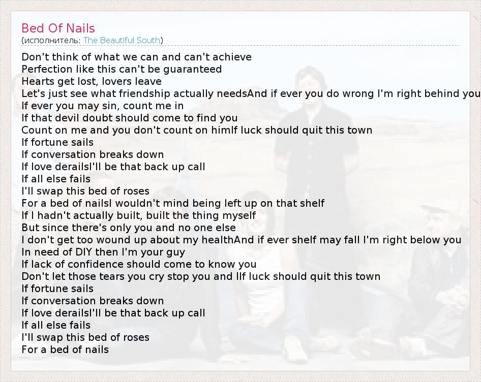 А как ты думаешь, о чем песня "Bed Of Nails" ?