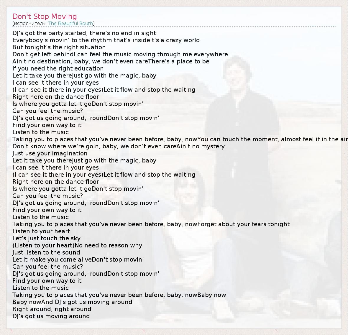 А как ты думаешь, о чем песня "Don't Stop Moving" ?