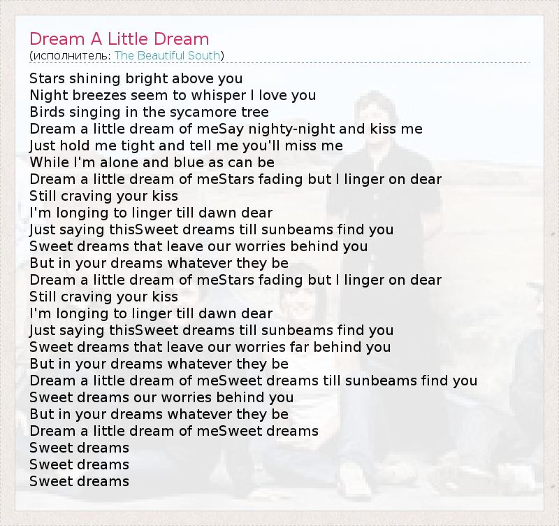 А как ты думаешь, о чем песня "Dream A Little Dream" ?