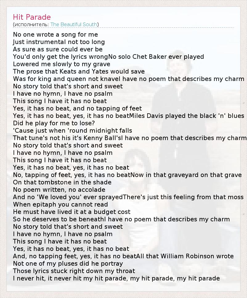 А как ты думаешь, о чем песня "Hit Parade" ?