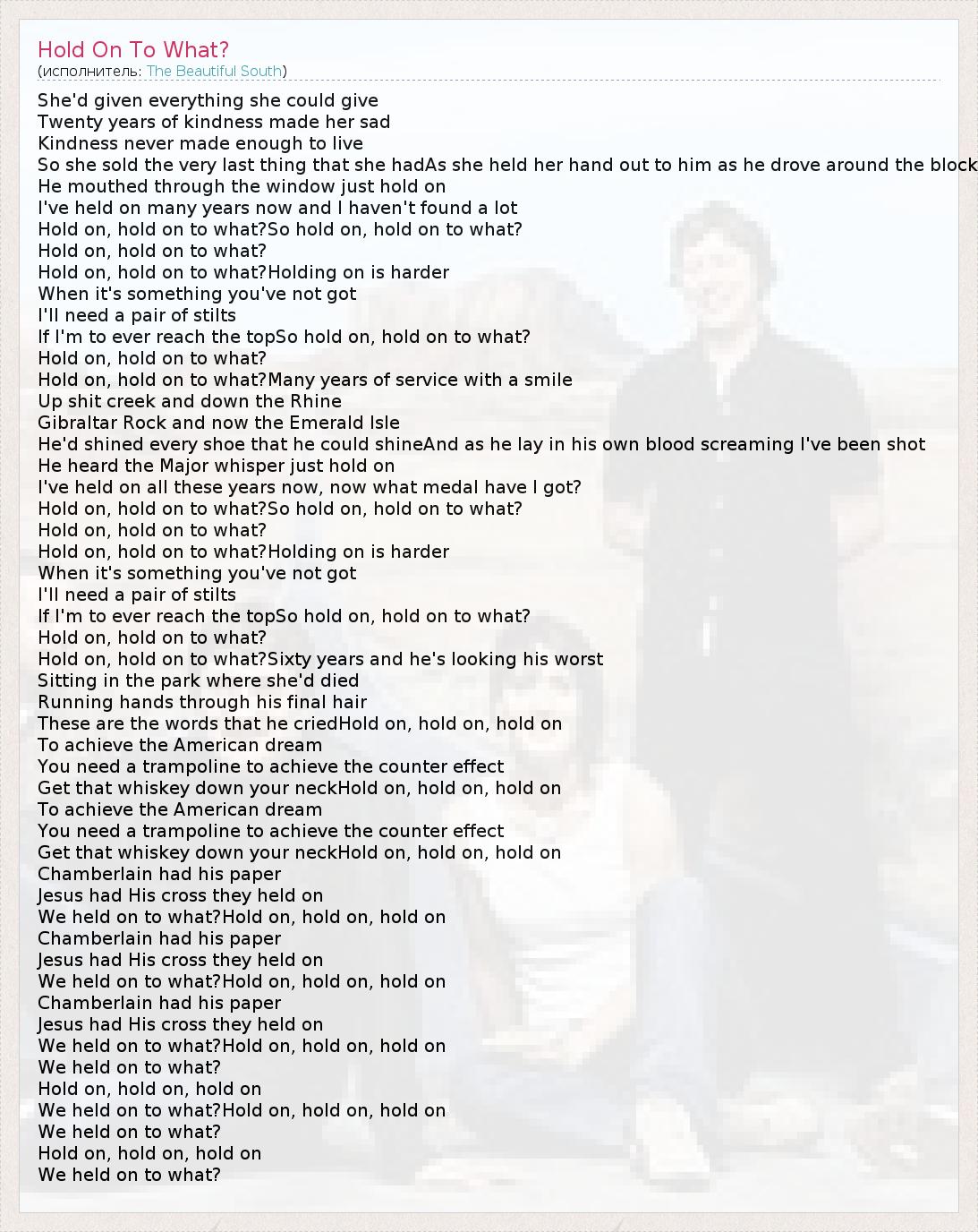 А как ты думаешь, о чем песня "Hold On To What?" ?