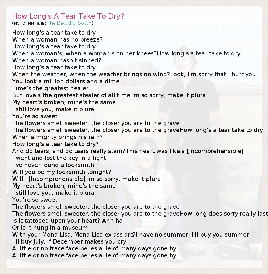 А как ты думаешь, о чем песня "How Long's A Tear Take To Dry?" ?