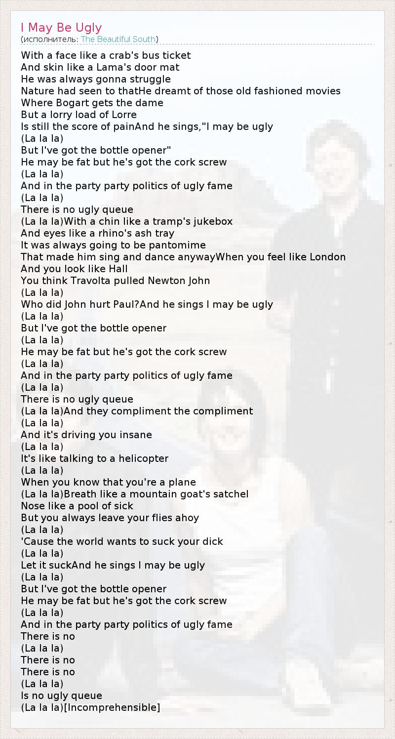 А как ты думаешь, о чем песня "I May Be Ugly" ?