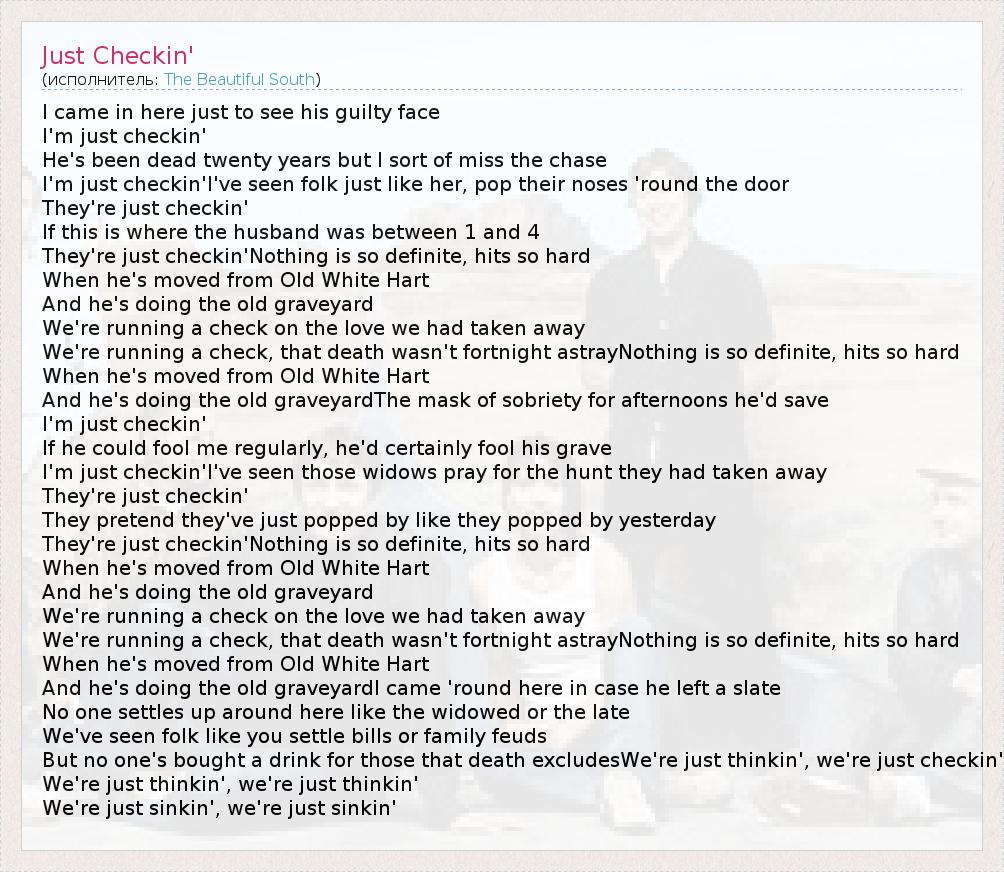 А как ты думаешь, о чем песня "Just Checkin'" ?