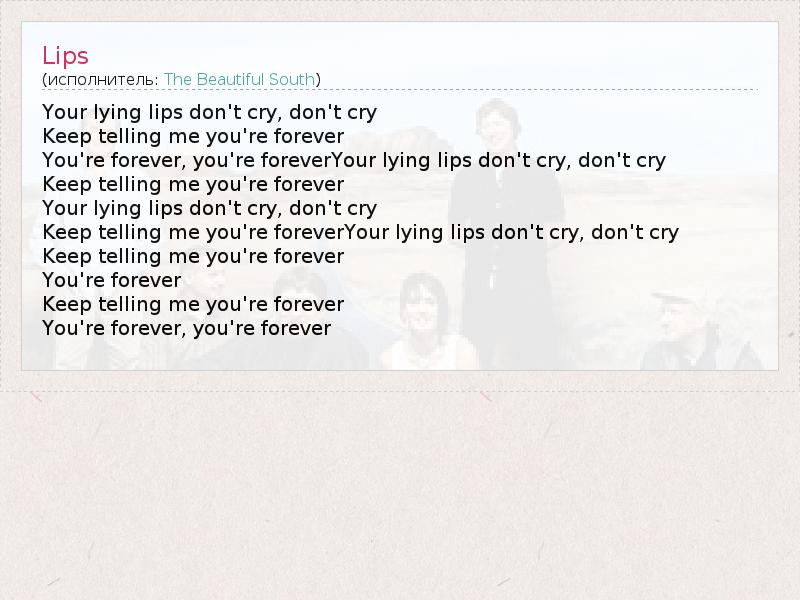 You're forever, you're foreverYour lying lips don't cry, don't cry