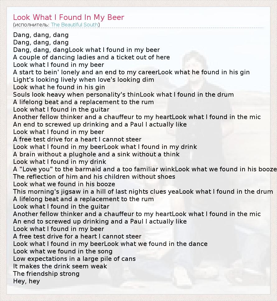 А как ты думаешь, о чем песня "Look What I Found In My Beer" ?