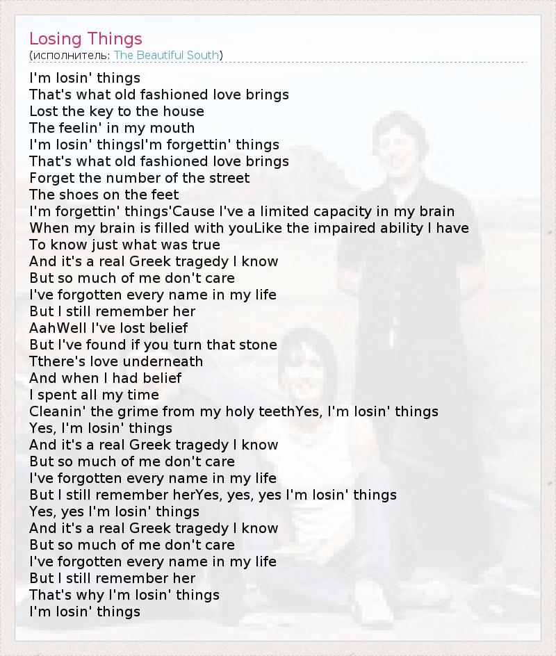 А как ты думаешь, о чем песня "Losing Things" ?