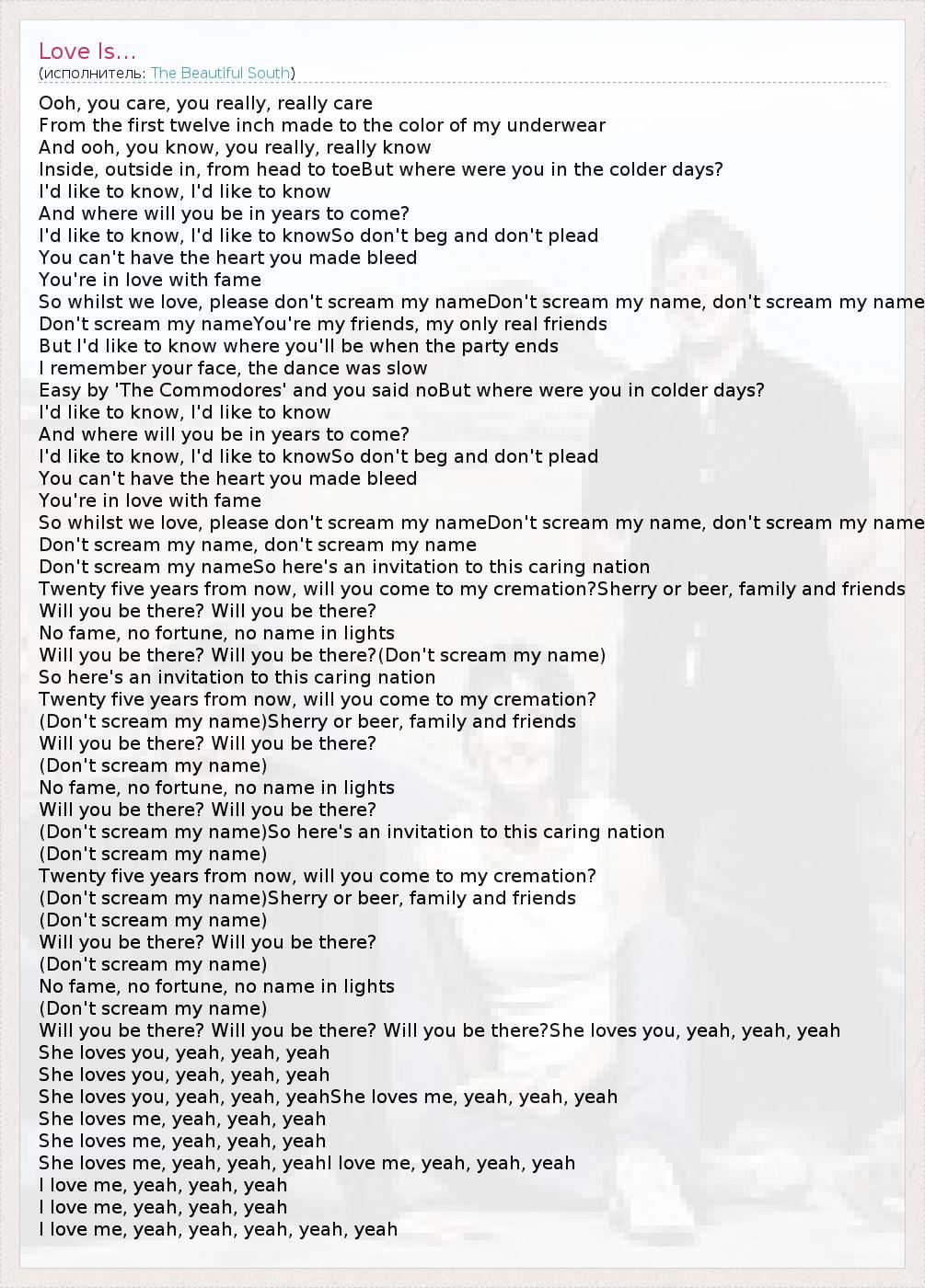 А как ты думаешь, о чем песня "Love Is..." ?