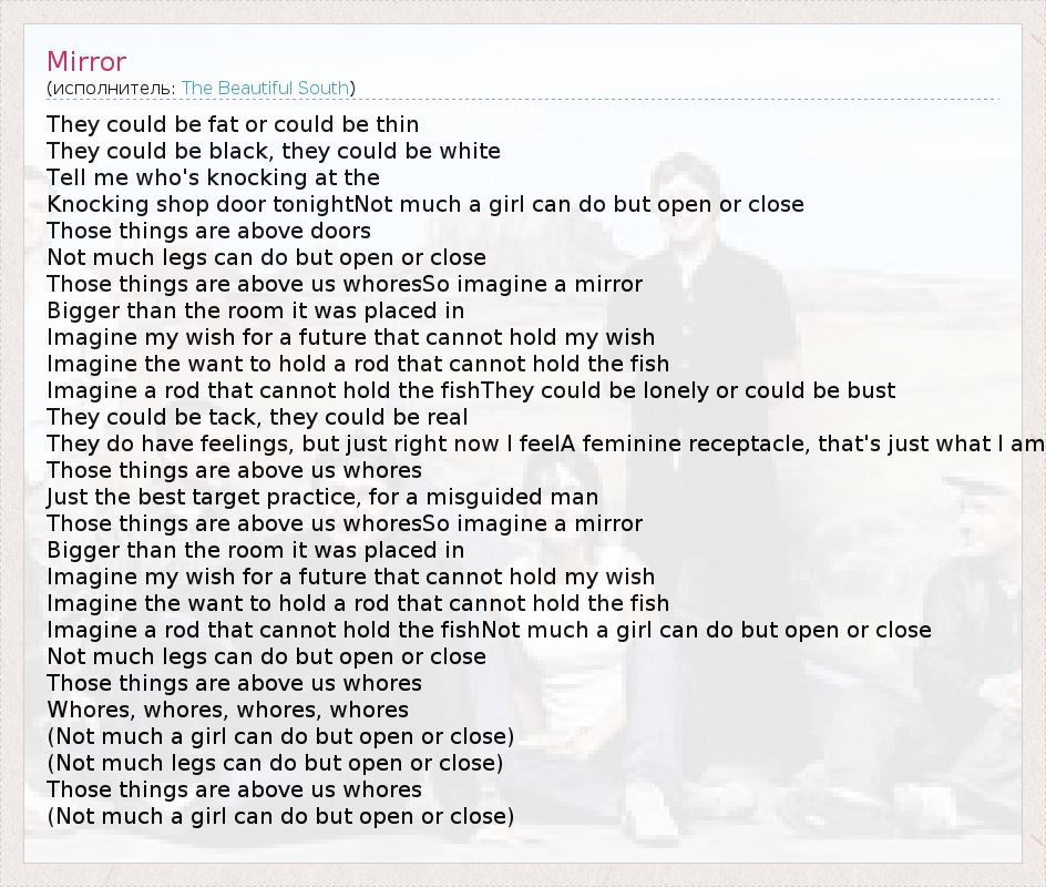 А как ты думаешь, о чем песня "Mirror" ?