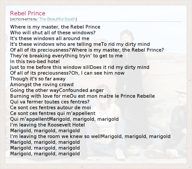 А как ты думаешь, о чем песня "Rebel Prince" ?