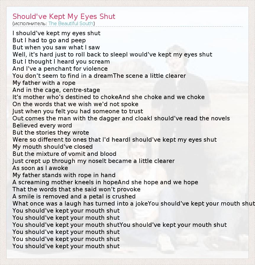А как ты думаешь, о чем песня "Should've Kept My Eyes Shut" ?