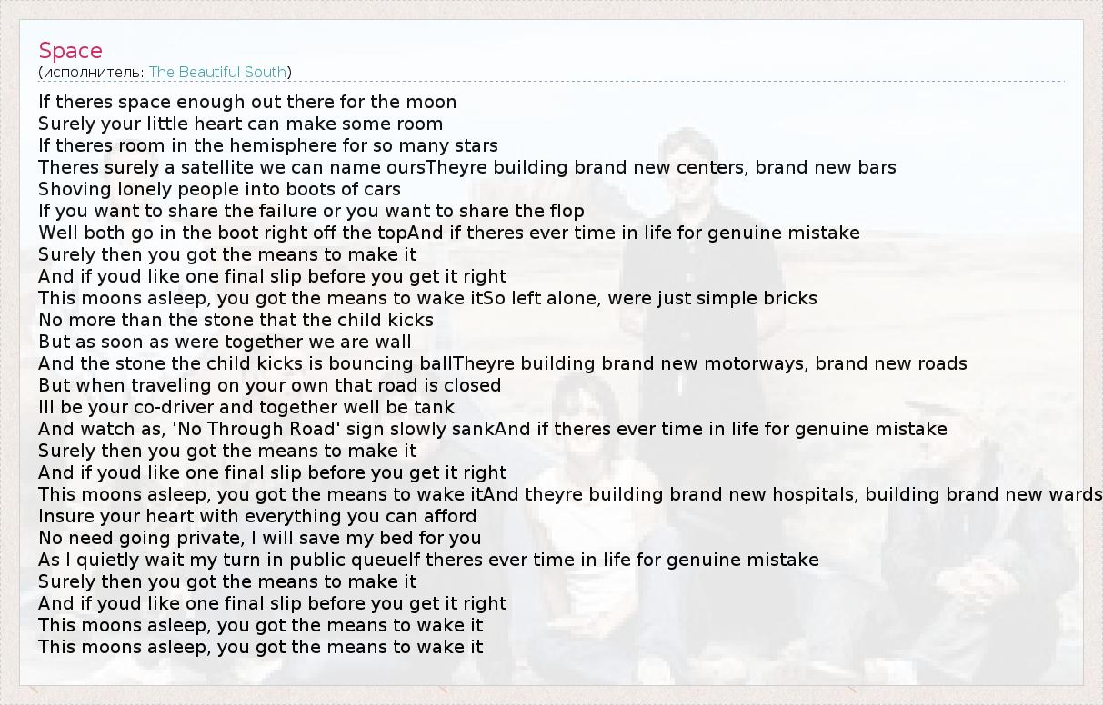 А как ты думаешь, о чем песня "Space" ?