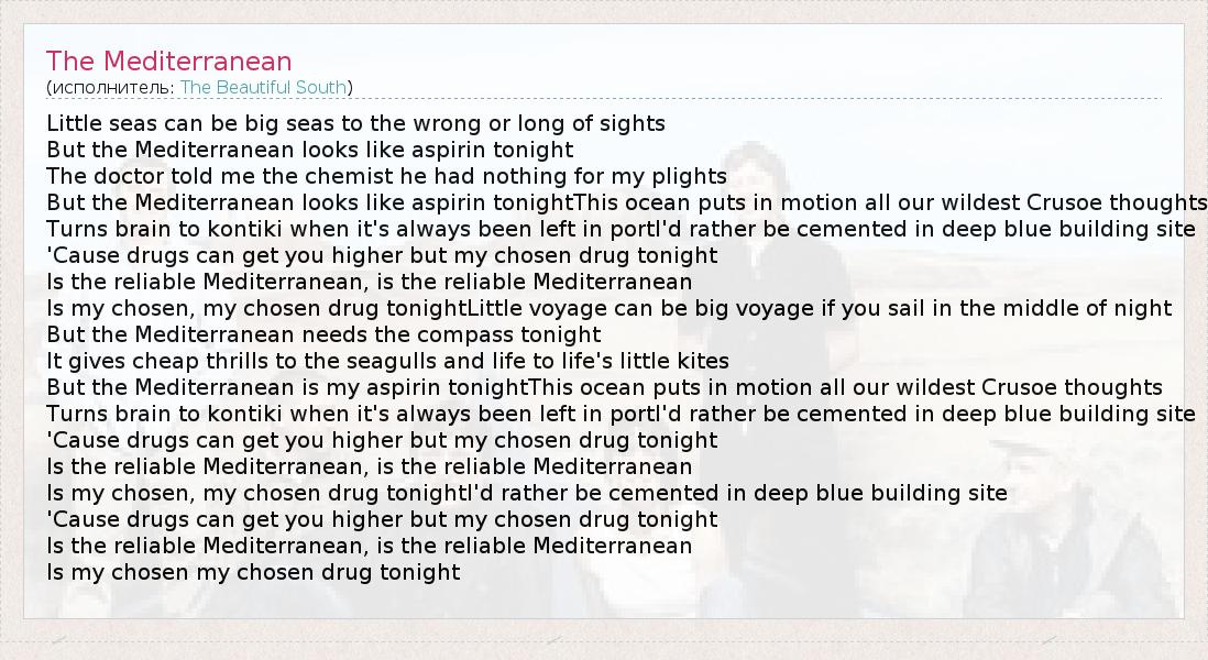А как ты думаешь, о чем песня "The Mediterranean" ?
