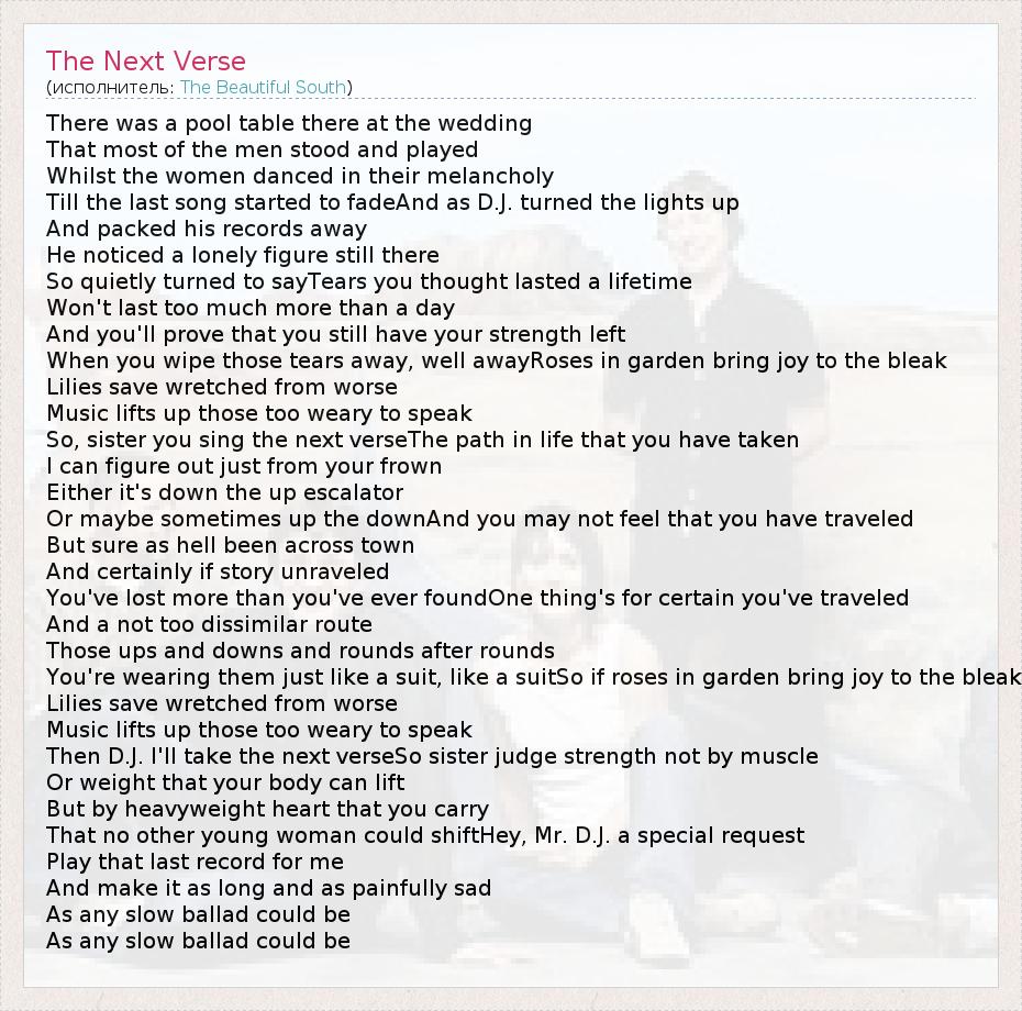 А как ты думаешь, о чем песня "The Next Verse" ?