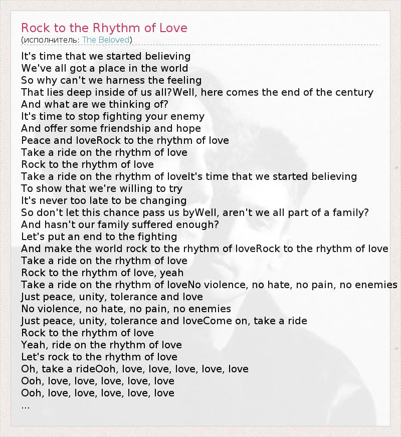And make the world rock to the rhythm of loveRock to the rhythm of love