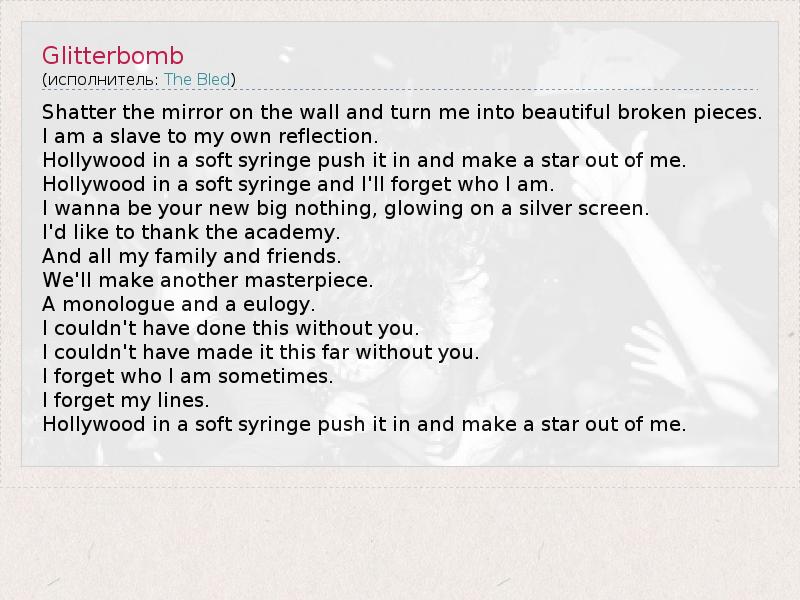 А как ты думаешь, о чем песня "Glitterbomb" ?