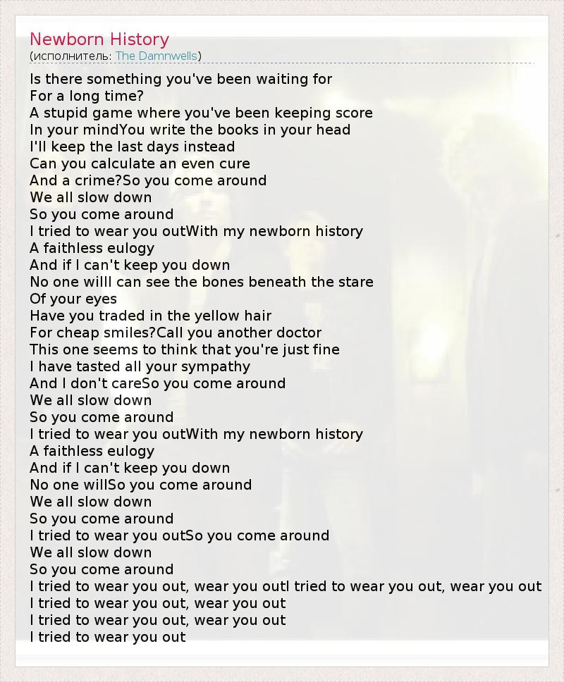 Это интересно:Current Members:- Alex Dezen ~ Vocals, Guitar- Ted Hudson ~ BassThe Damnwells are a musical group revolving primarily around the songwriting efforts of Alex Dezen.Past Members (2000-2007):- David Chernis ~ Lead Guitar- Steven Terry ~ DrumsPlayers (past and present):- J Barclay ~ Guitar, Vocals- Thad DeBrock ~ Guitar- Angela Dezen ~ Vocals- Adrian Dickey ~ Bass, Vocals- Cameron Dezen Hammon ~ Vocals- Michael Flynn ~ Keyboards, Vocals- Matt “the” Hammon ~ Drums, Percussion- Dan Hickey ~ Drums, Percussion- Josh Kaler ~ Drums, Percussion, Pedal Steal- David Lamoureux ~ Keyboards, Vocals-... продолжение