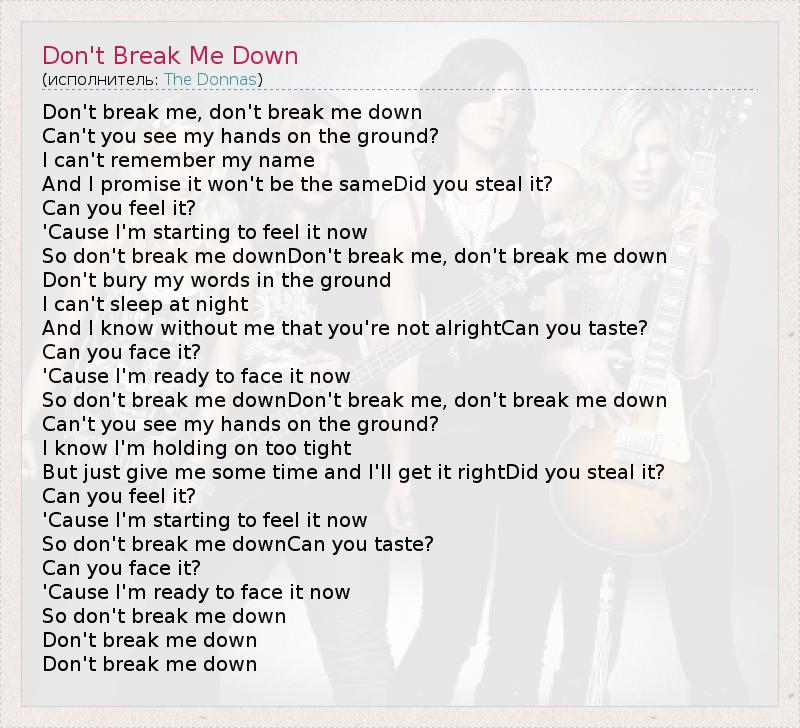 А как ты думаешь, о чем песня "Don't Break Me Down" ?