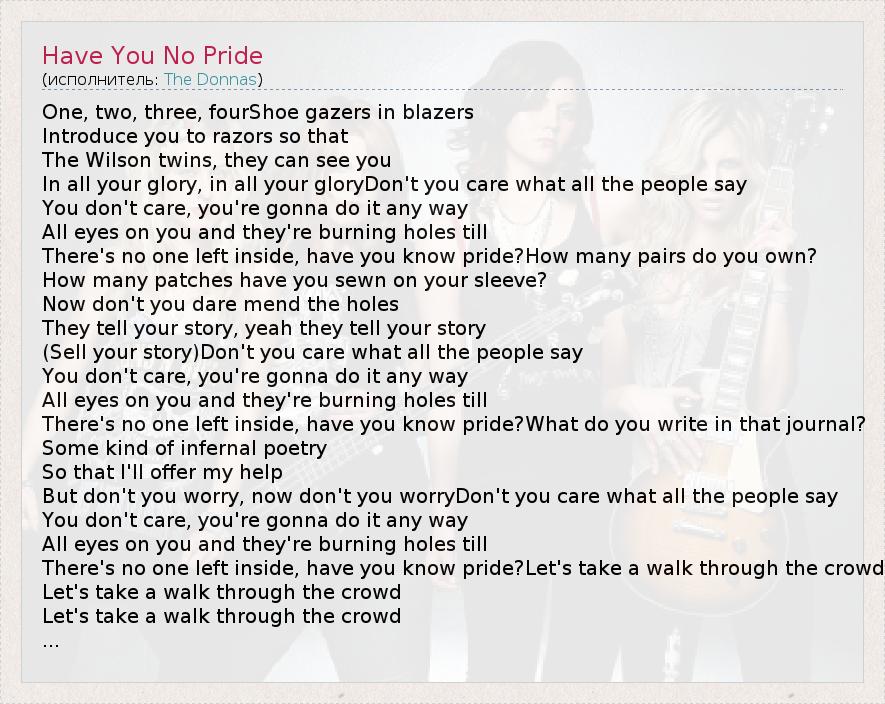 А как ты думаешь, о чем песня "Have You No Pride" ?