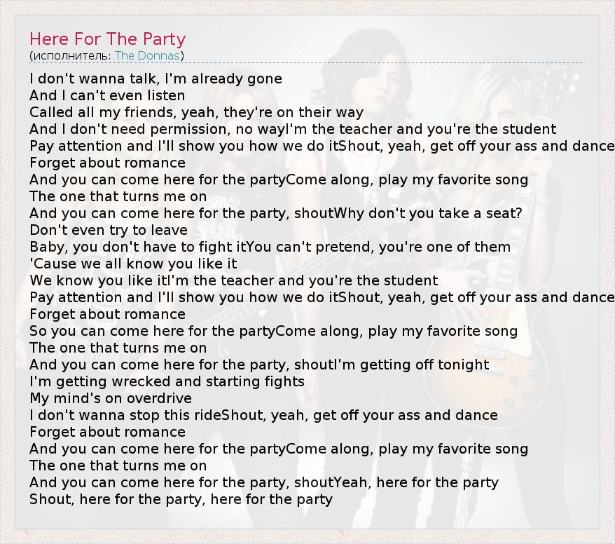 А как ты думаешь, о чем песня "Here For The Party" ?