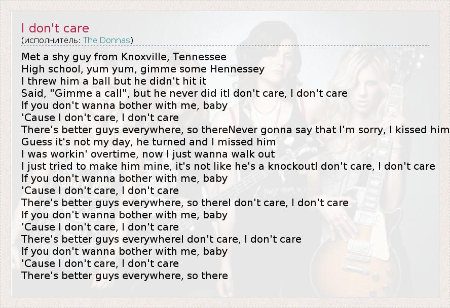 А как ты думаешь, о чем песня "I don't care" ?