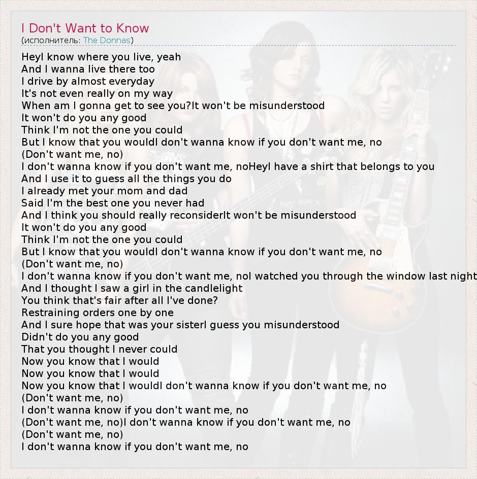 А как ты думаешь, о чем песня "I Don't Want to Know" ?