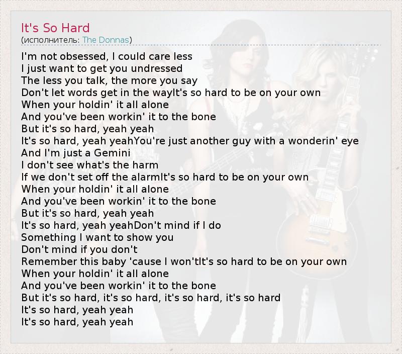 А как ты думаешь, о чем песня "It's So Hard" ?