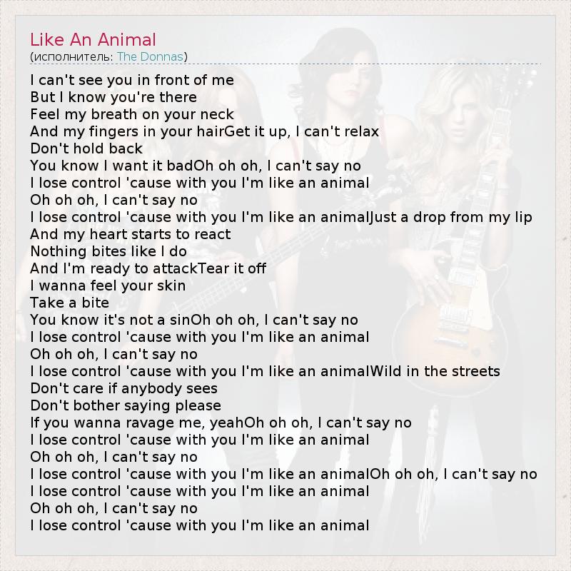 I lose control 'cause with you I'm like an animalOh oh oh, I can't say no