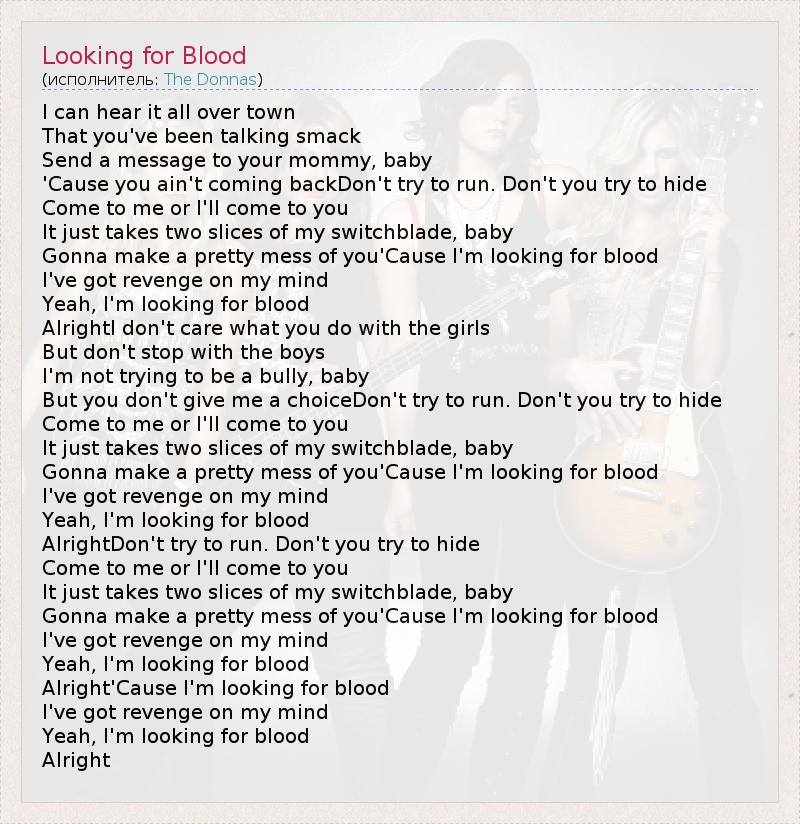 А как ты думаешь, о чем песня "Looking for Blood" ?