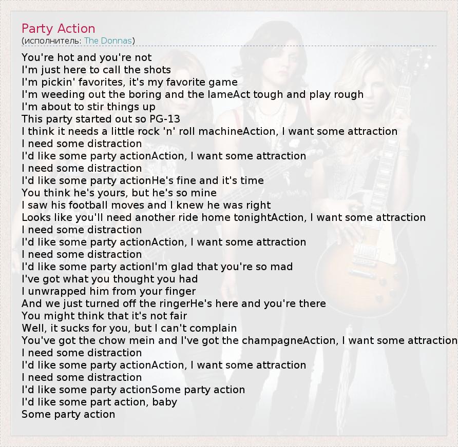 А как ты думаешь, о чем песня "Party Action" ?