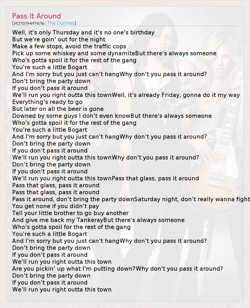 А как ты думаешь, о чем песня "Pass It Around" ?