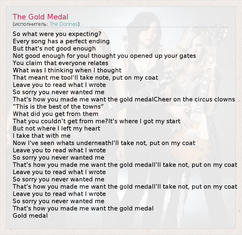 А как ты думаешь, о чем песня "The Gold Medal" ?