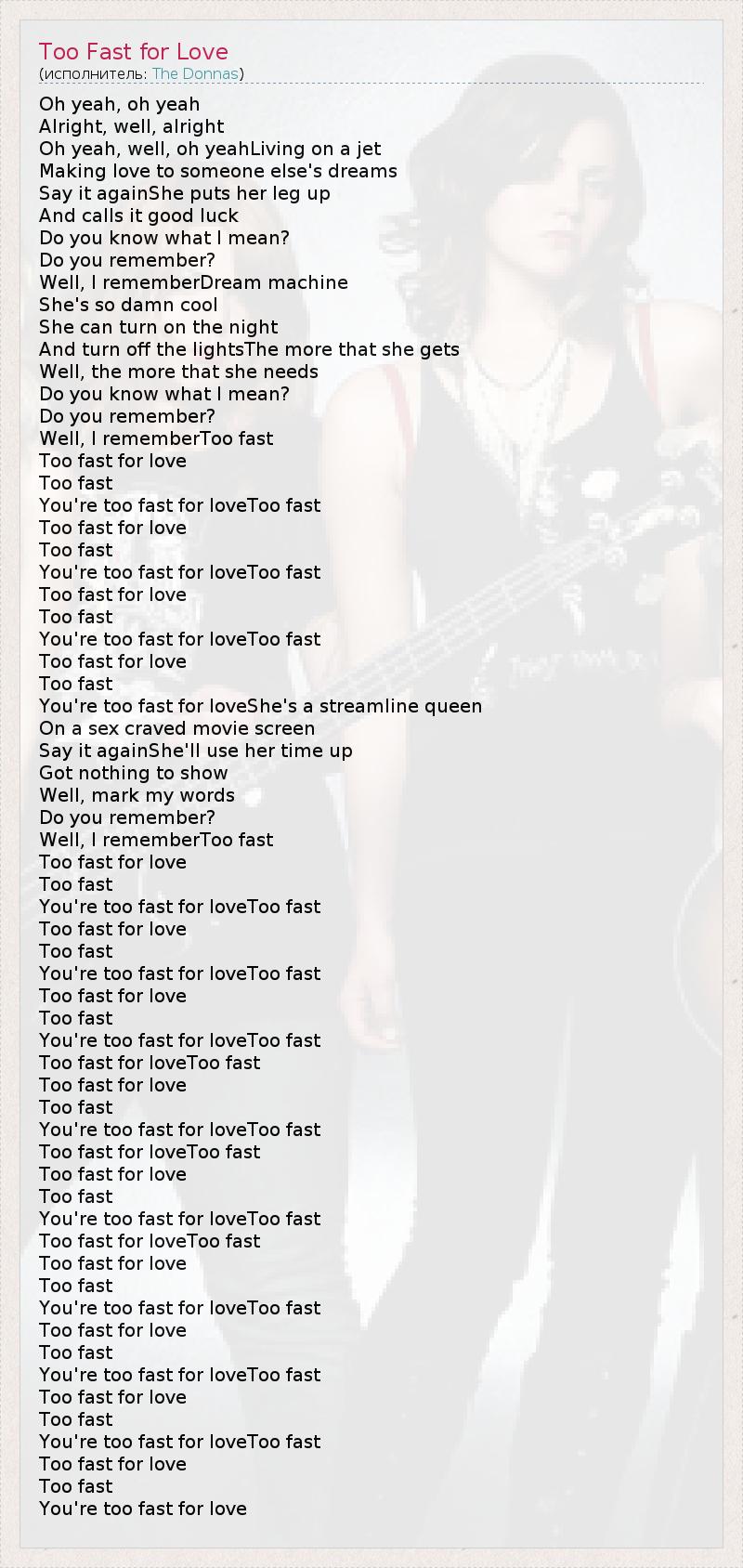 А как ты думаешь, о чем песня "Too Fast for Love" ?