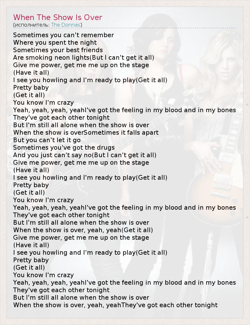 А как ты думаешь, о чем песня "When The Show Is Over" ?
