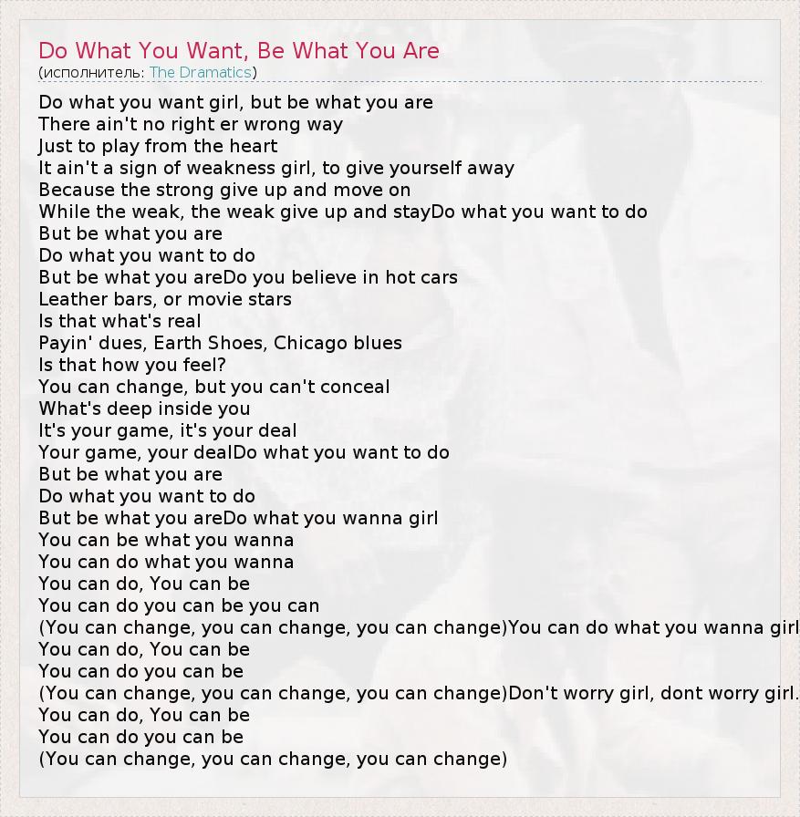 ГлавнаяИсполнителиThe DramaticsDo What You Want, Be What You Are