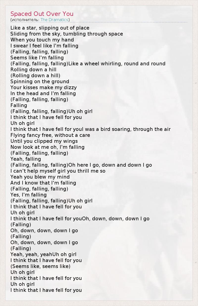 Like a star, slipping out of place Sliding from the sky, tumbling through space When you touch my hand I swear I feel like I'm falling (Falling, falling, falling) Seems like I'm falling (Falling, falling, falling)Like a wheel whirling, round and round Rolling down a hill (Rolling down a hill) Spinning on the ground Your kisses make my dizzy In the head and I'm falling (Falling, falling, falling) Falling (Falling, falling, falling)Uh oh girl I think that I have fell for you Uh oh girl I think that I have fell for youI was a bird soaring, through the air Flying fancy free, without a care Until you clipped my wings Now look at me oh, I'm falling (Falling, falling, falling) Yeah, falling (Falling, falling, falling)Oh here I go, down and down I go I can't help myself girl you thrill me so Yeah you blew my mind And I know that I'm falling (Falling, falling, falling) Yes, I'm falling (Falling, falling, falling)Uh oh girl I think that I have fell for you Uh oh girl I think that I have fell for youOh, down, down, down I go (Falling) Oh, down, down, down I go (Falling) Oh, down, down, down I go (Falling) Yeah, yeah, yeahUh oh girl I think that I have fell for you (Seems like, seems like) Uh oh girl I think that I have fell for you Uh oh girl I think that I have fell for you