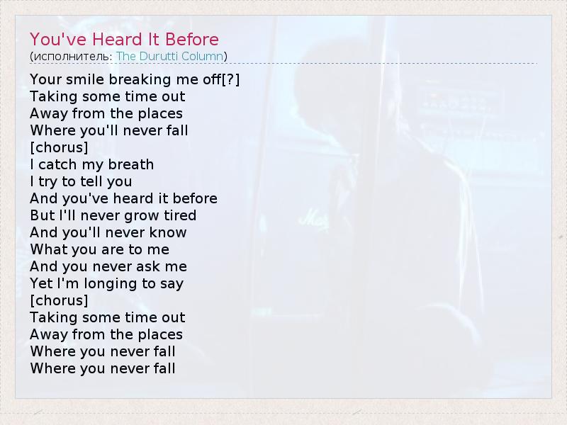 А как ты думаешь, о чем песня "You've Heard It Before" ?