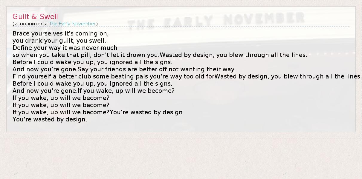 А как ты думаешь, о чем песня "Guilt & Swell" ?